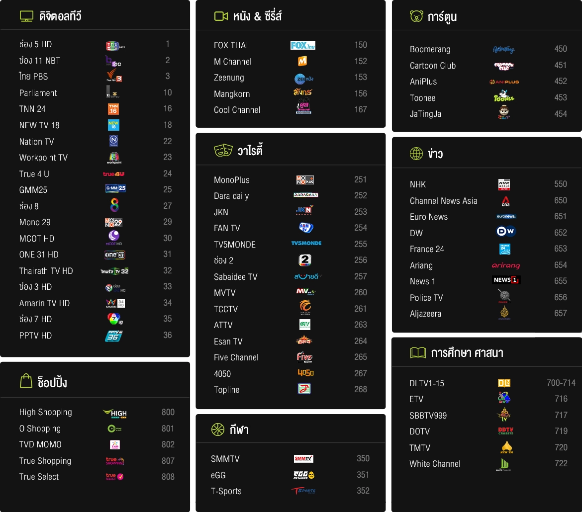 2.คุณจะได้รับชมช่องรายการฟรีทีวี ได้มากกว่า 100 ช่องแถมภาพคมชัดระดับพรีเมี่ยม