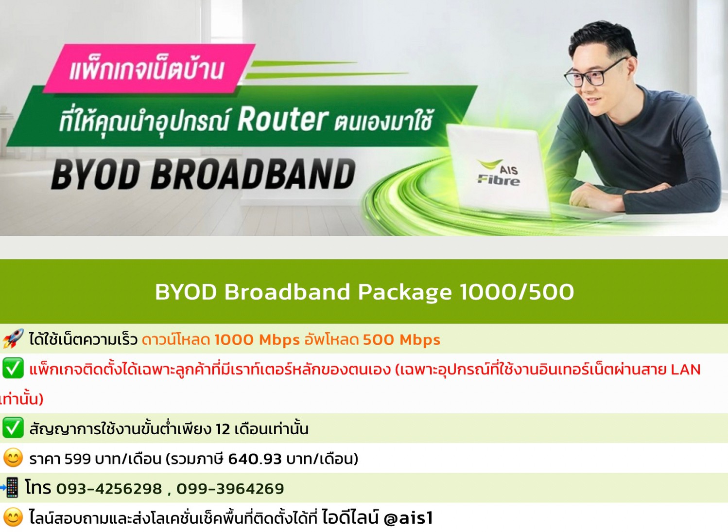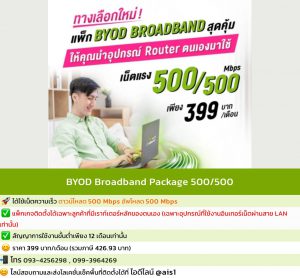 ทางเลือกใหม่ ต้องแพ็กเกจ BYOD BROADBAND ที่ให้คุณนำอุปกรณ์ Router ตนเองมาใช้
